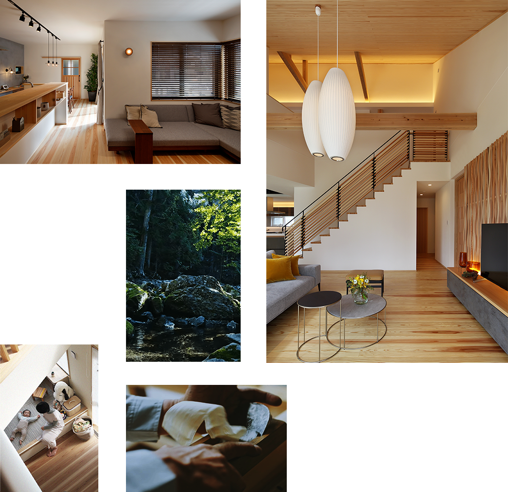 当社が手がける注文住宅は、最高級のブランド木材“吉野杉”をふんだんに使用し、“珪藻土”で仕上げるこだわりの完全注文住宅。