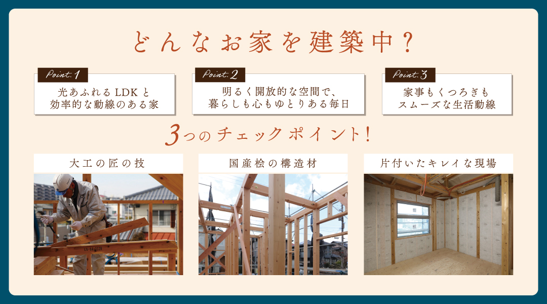- 建築プロセスを知りたい方 家づくりの進め方や、使用される素材や構造の詳細に興味がある方にも最適な機会です。見えない部分までしっかり確認することで、安心して家づくりを進められます。