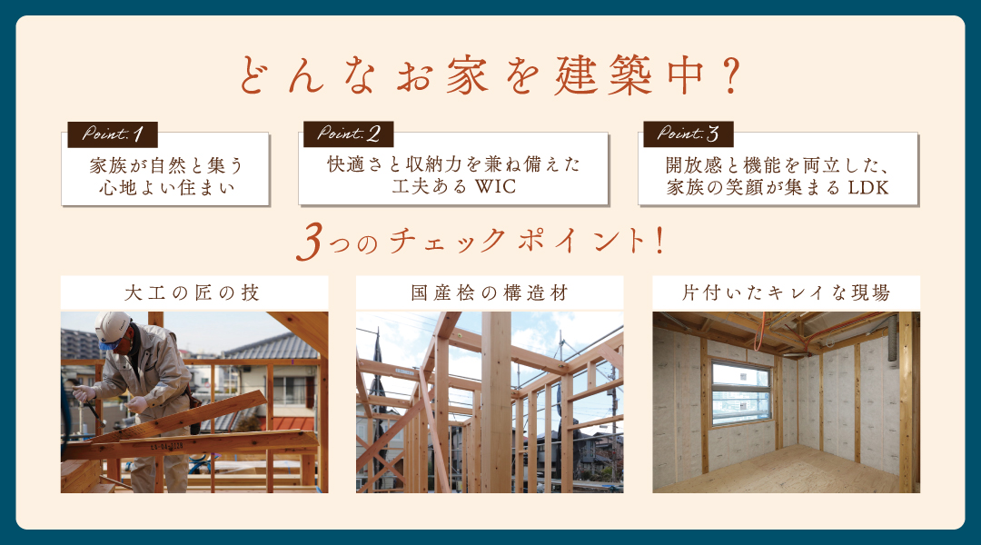 - 建築プロセスを知りたい方 家づくりの進め方や、使用される素材や構造の詳細に興味がある方にも最適な機会です。見えない部分までしっかり確認することで、安心して家づくりを進められます。