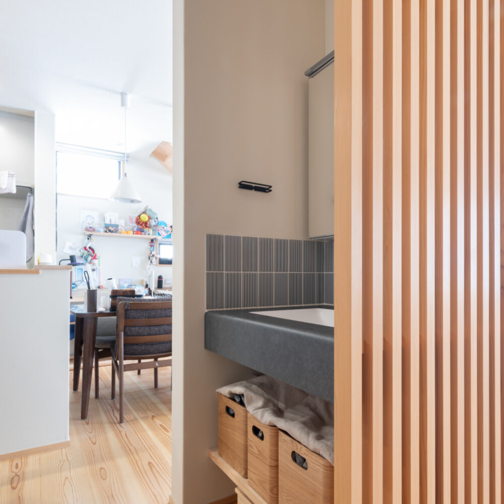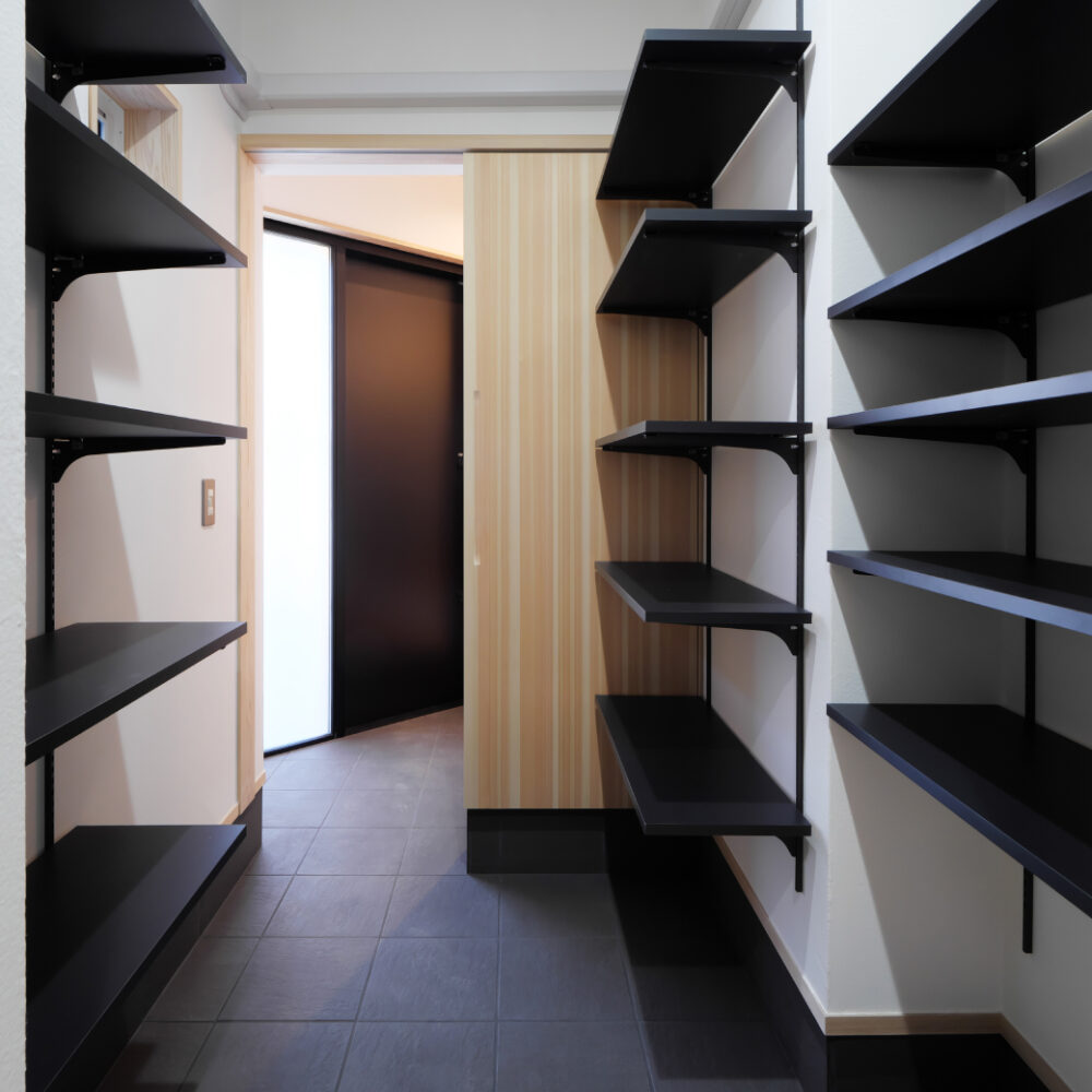 玄関からそのまま通り抜けできるウォークスルークロークを設け、靴やアウターをすっきりと収められます。