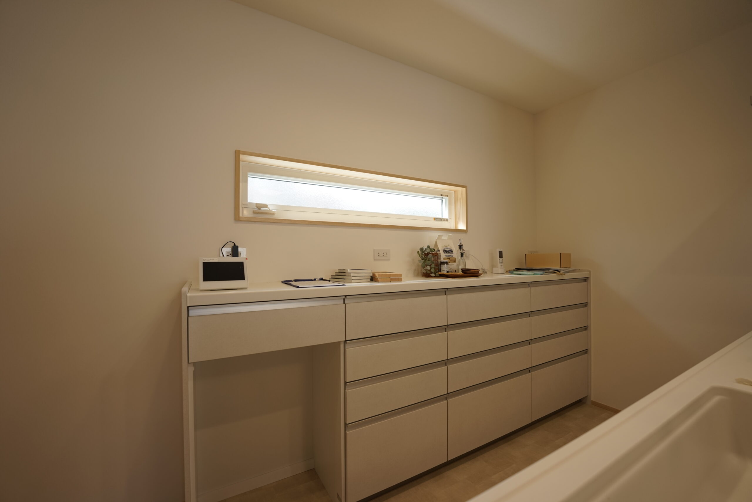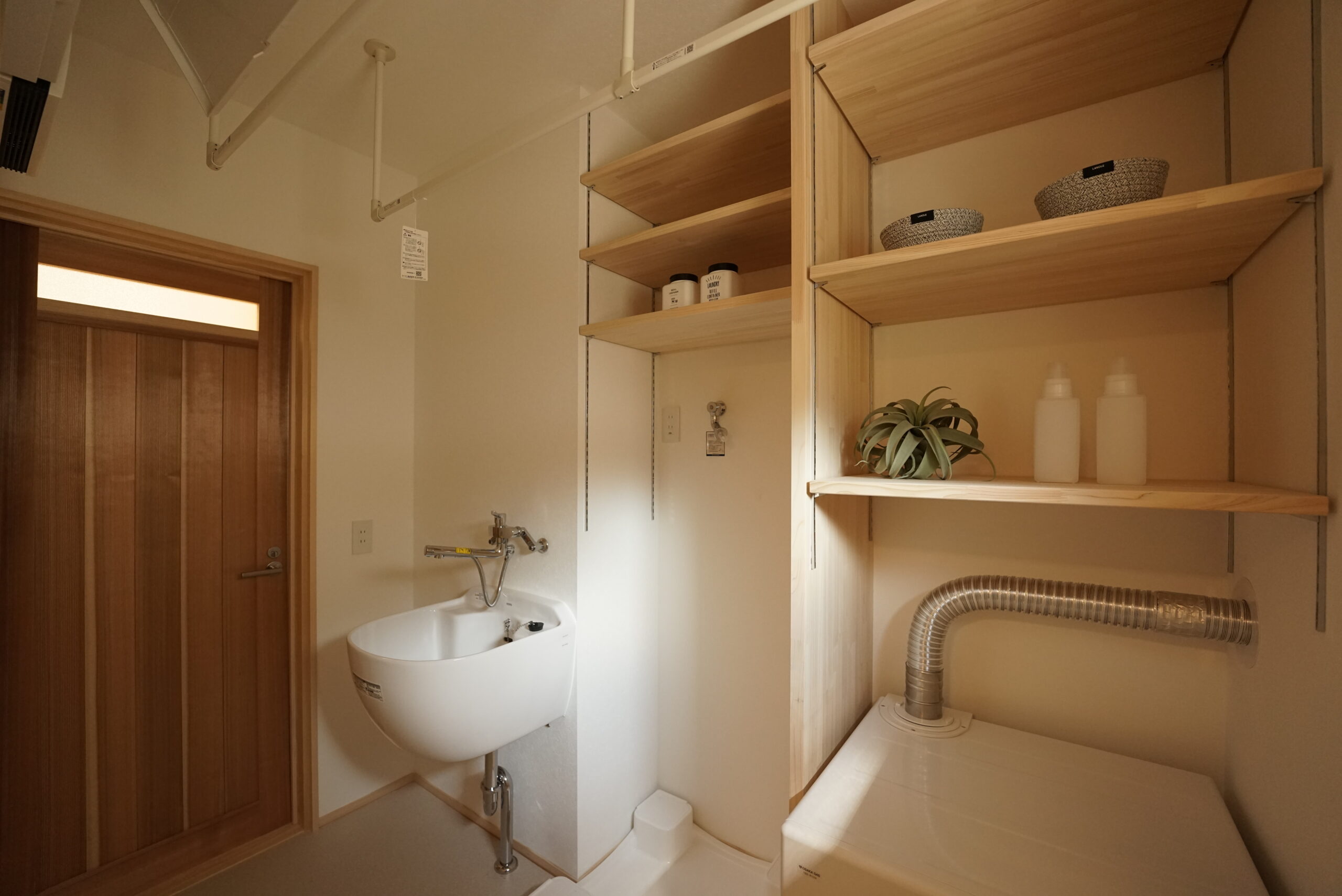 スロップシンクや物干しバー、洗濯機と乾燥機を並べて置けるスペースなど、