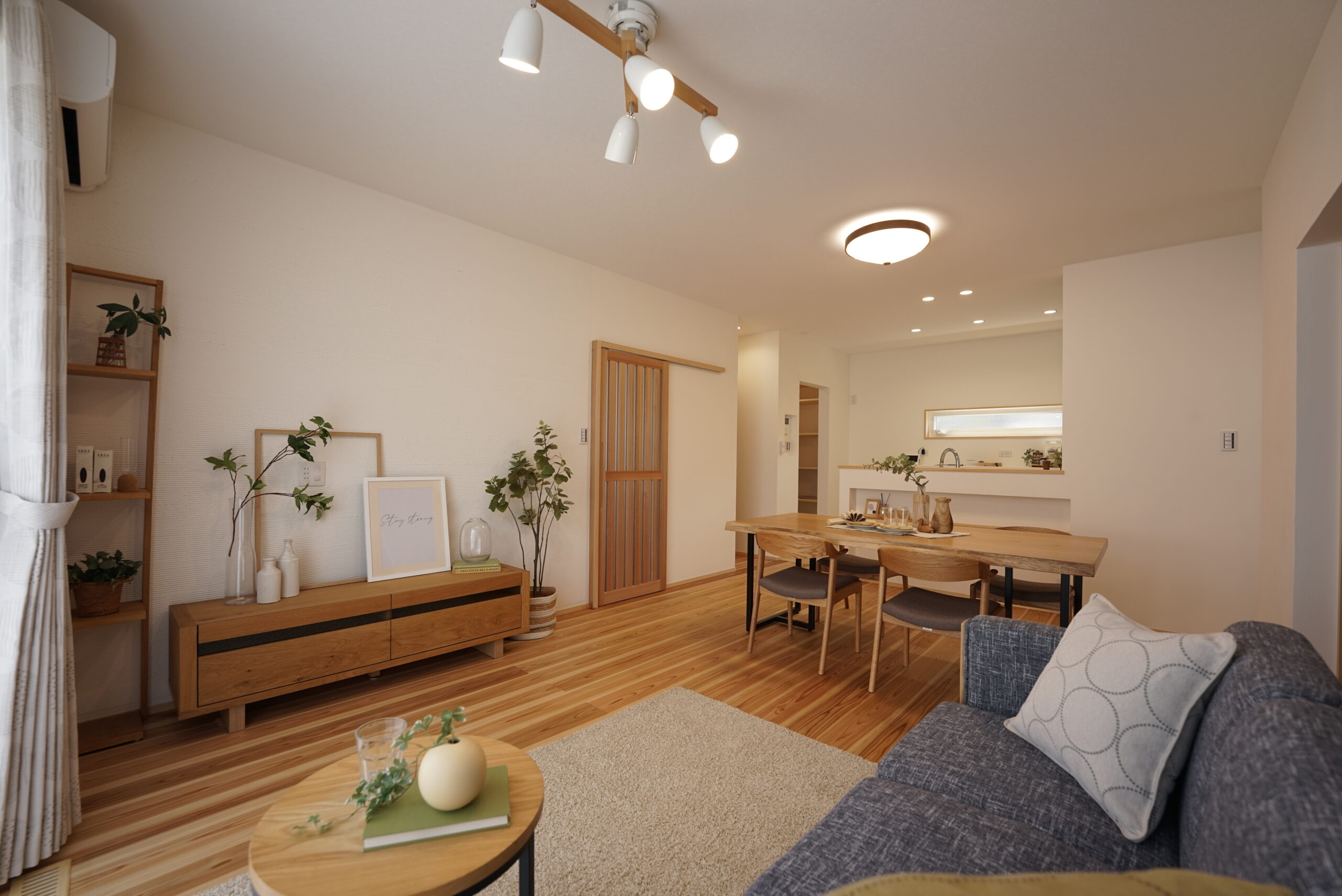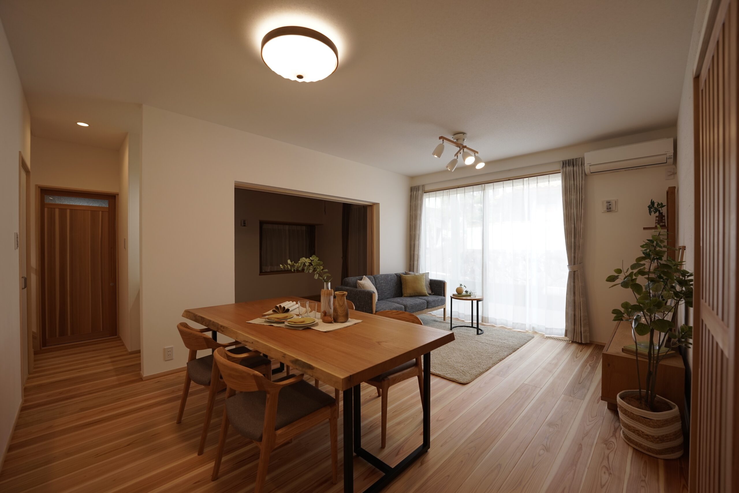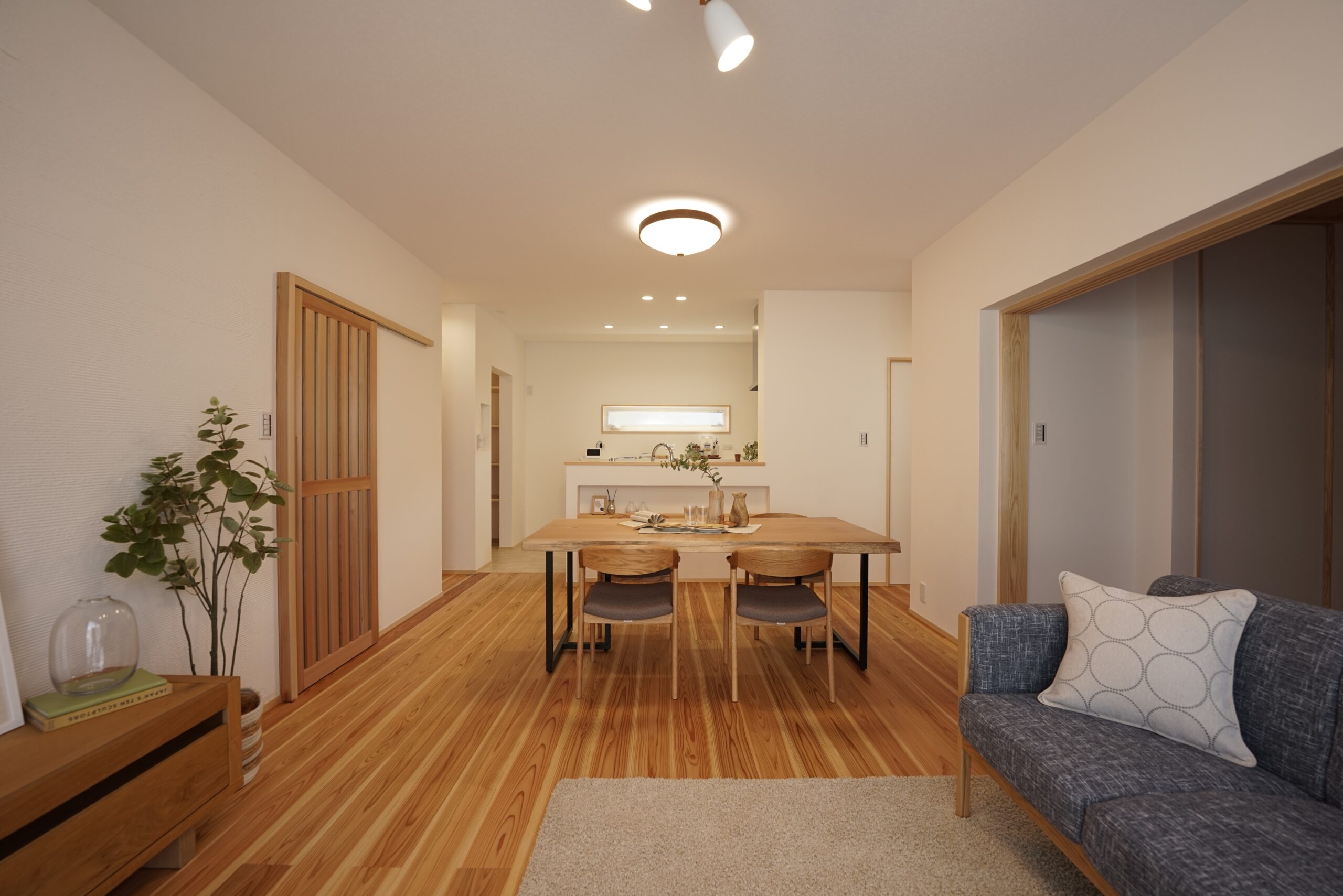 広いLDKの隣には建具でつながる洋室があり、将来の同居を見据えています。