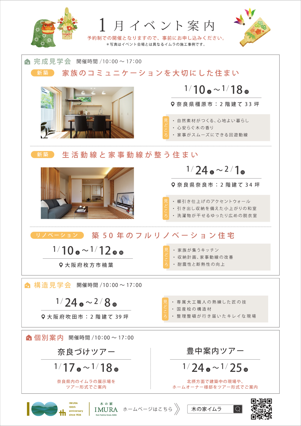 新築はもちろん、リノベーションのお家や、建築中のお家をご覧いただける見学会を多数開催。