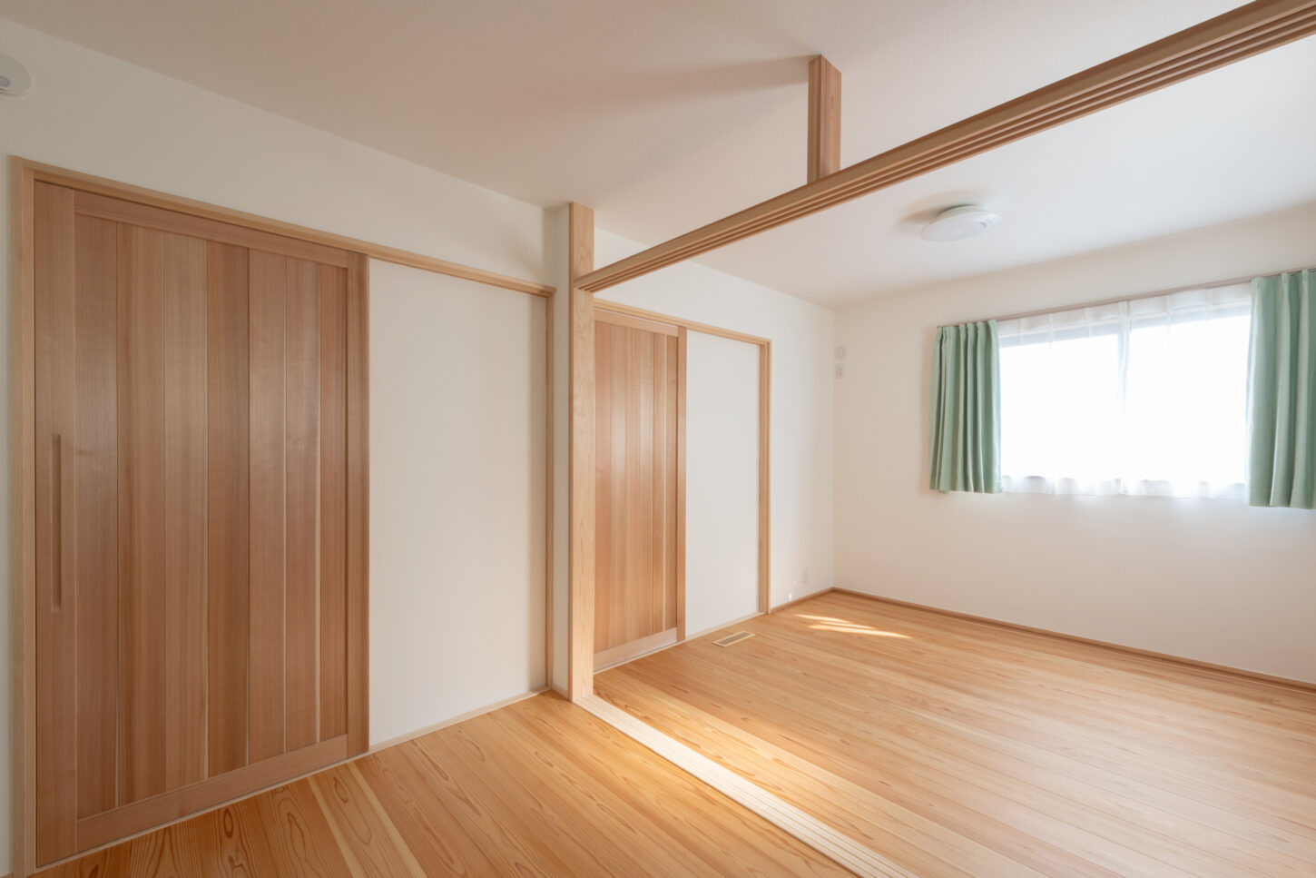 床には吉野杉を使用し、やわらかな足触りとあたたかみのある木目が広がります。造作の建具も空間に統一感をもたらし、シンプルで飽きのこないデザインに仕上げました。